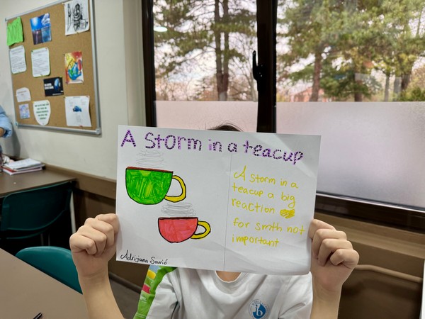 Čas je bio sjajan spoj zabave, kreativnosti i učenja. Učenici su kroz zanimljive aktivnosti otkrivali značenja najrazličitijih idioma povezanih s vremenom, poput under the weather, a storm in a teacup i mnogih drugih.